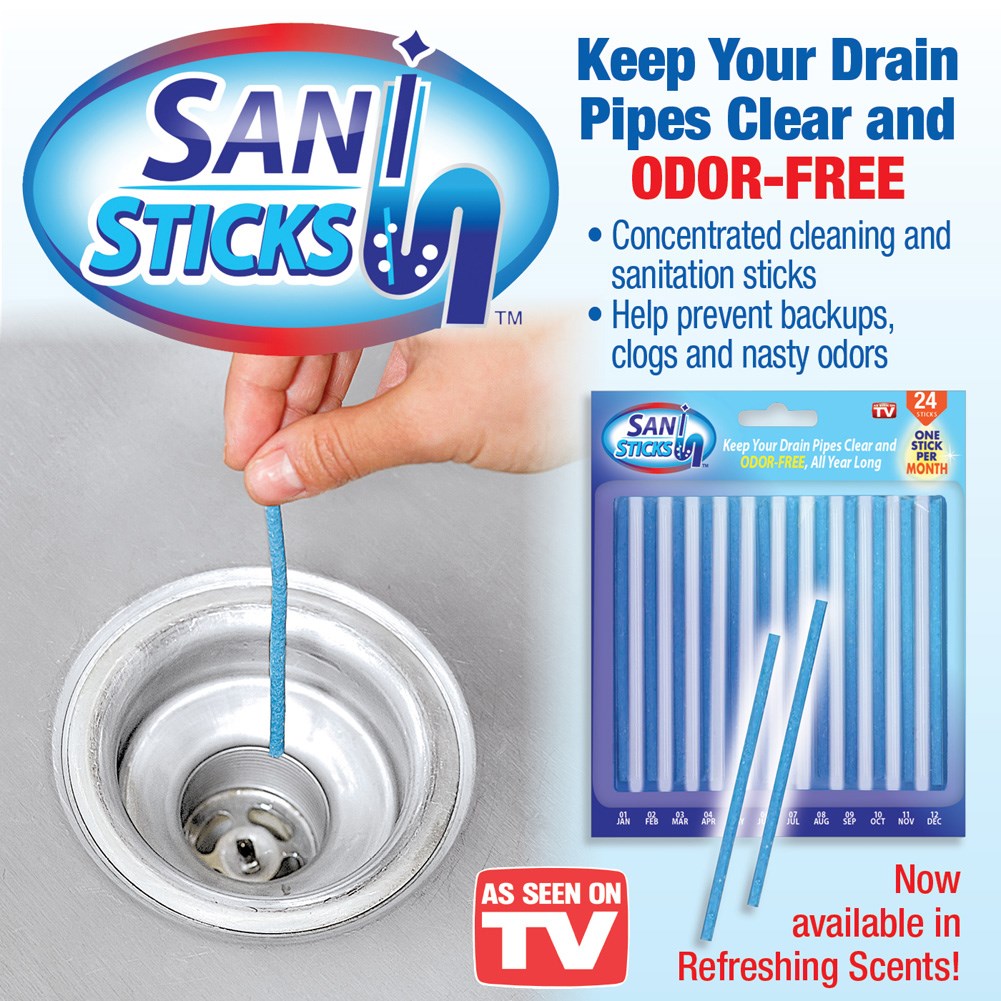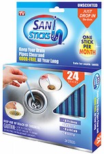 . This is the new ebay. When they fall the Sani Sticks rest in the pipe trap. SANI 360 Sani Sticks Drain Cleaner and Deodorizer Non-Toxic Enzyme Formula to Eliminate Odors and Helps Prevent Clogged Drains Septic Tank Safe 48 Count Lemon Scent by SANI.